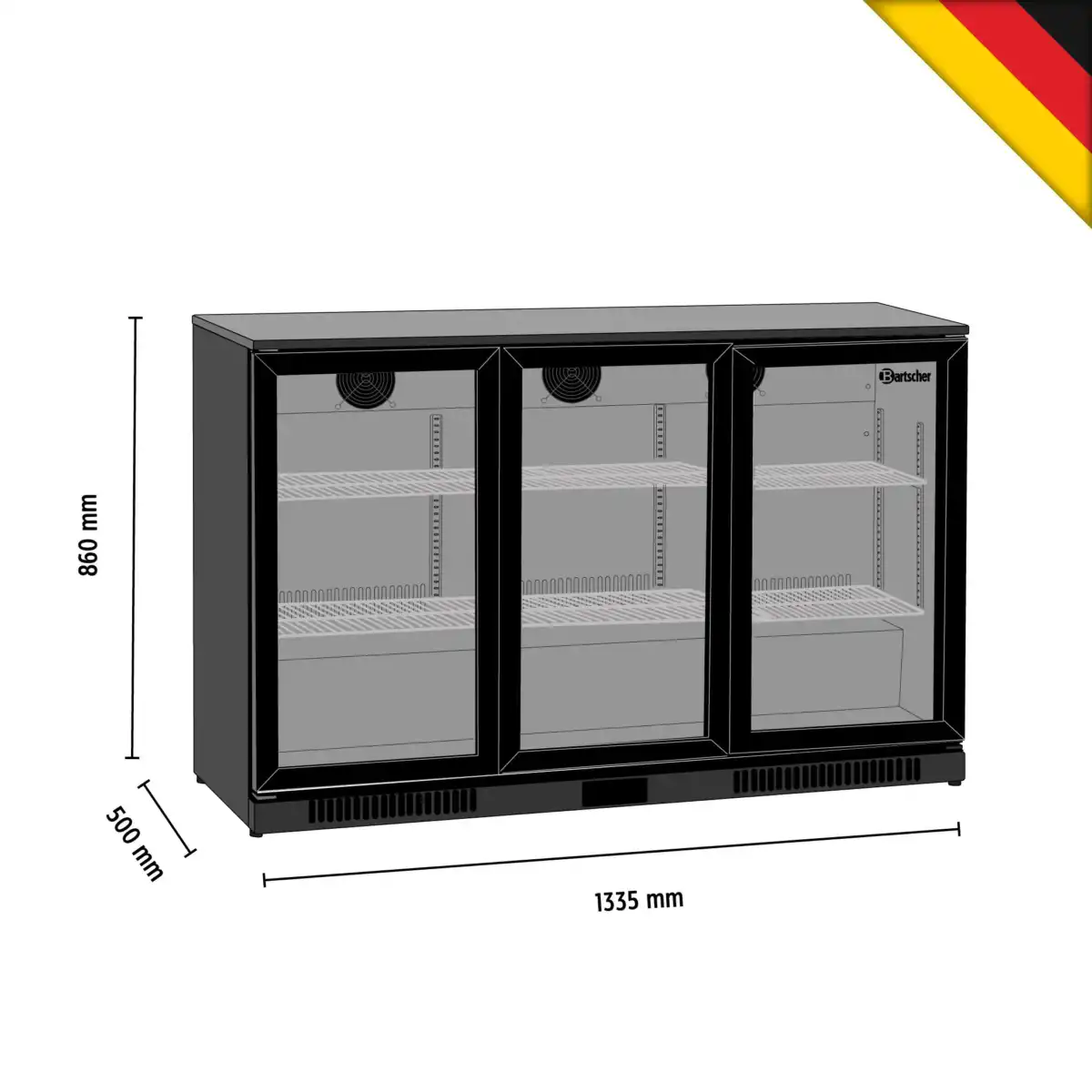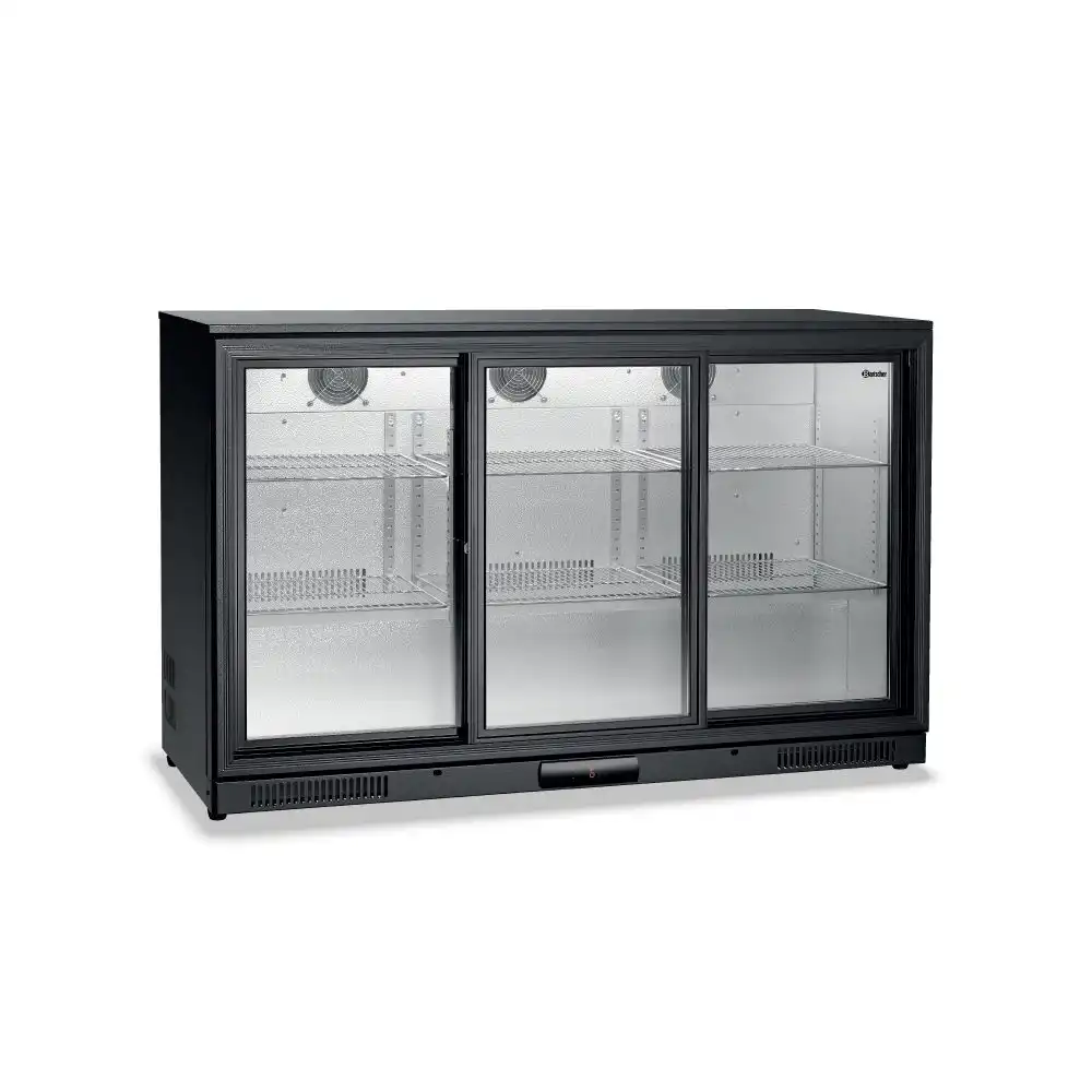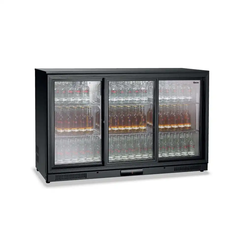Βιτρίνα συντήρησης τριπλή Back Bar 700123 Bartscher , χωρητικότητας 270 lt. Το τριπλό Back Bar της Bartscher , με χωρητικότητα 270 λίτρα και ισχύ 220Watt , ψύχει τα ποτά και τα αναψυκτικά σας με αξιοπιστία. Διαθέτει ηλεκτρονικό θερμόμετρο αλλά και θερμοστάτη δίνοντας έτσι την δυνατότητα για ακριβή ρύθμιση της επιθυμητής θερμοκρασίας. Οι τρεις συρόμενες πόρτες του διαθέτουν διπλό τζάμι και κλειδαριά ενώ ο εσωτερικός φωτισμός του βοηθά στην καλύτερη δυνατή παρουσίαση των προϊόντων προς τον καταναλωτή.