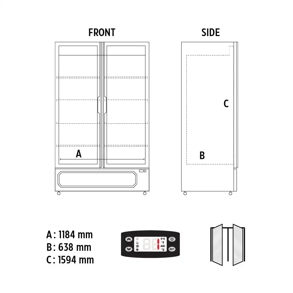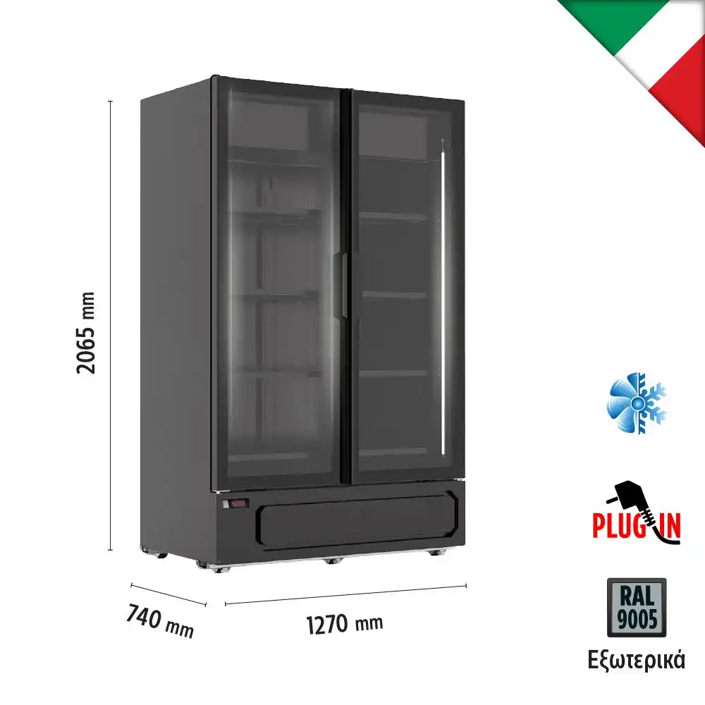 Βιτρίνα συντήρησης διπλή με ανοιγόμενες πόρτες 1215 lt (MILANO 1270 BLK)