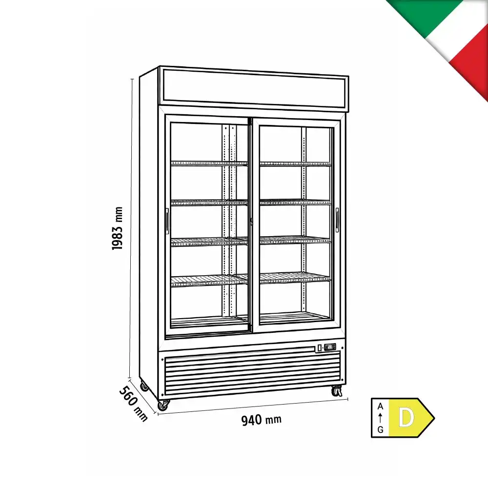 Βιτρίνα συντήρησης όρθια διπλή με συρόμενες πόρτες , χωρητικότητας 495 lt. Προμηθευτής : KlimaItalia