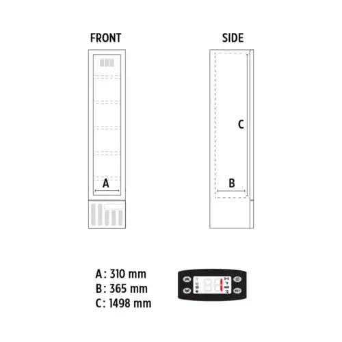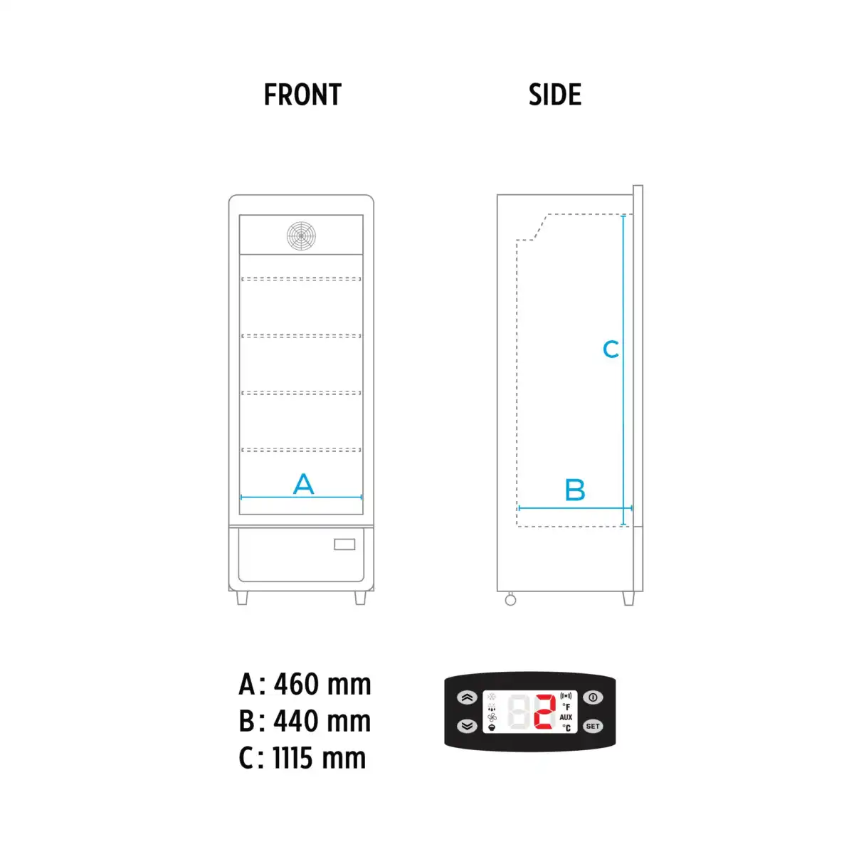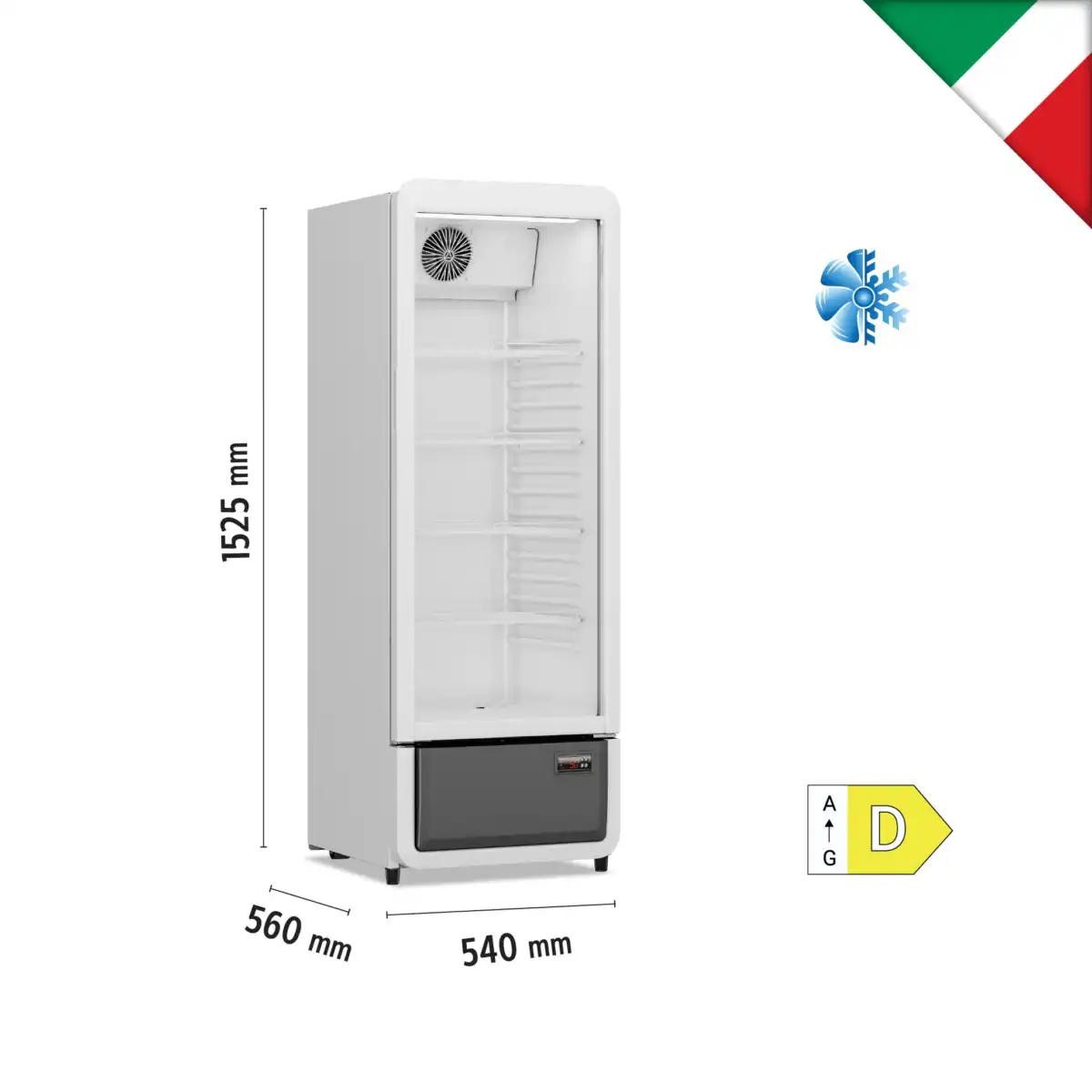 Βιτρίνα συντήρησης όρθια μονή, βεβιασμένης ψύξης, χωρητικότητας 237 lt, του εργοστασίου KlimaItalia.