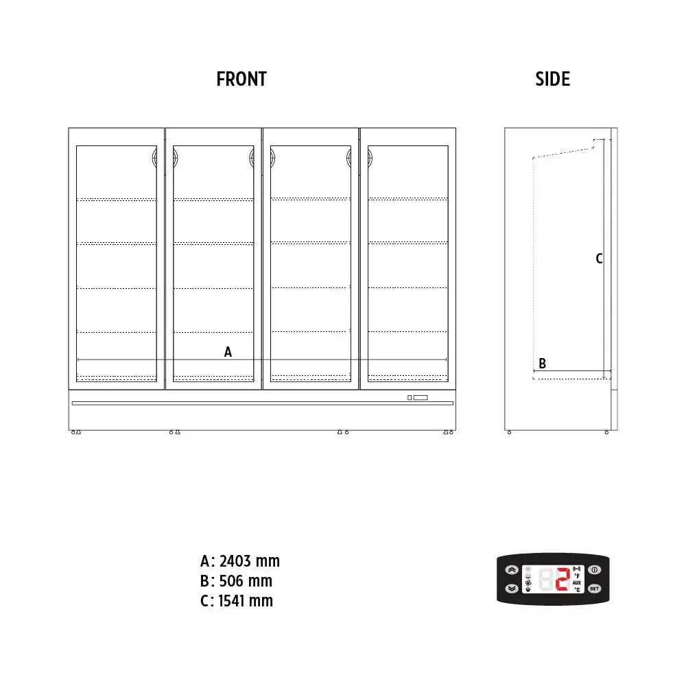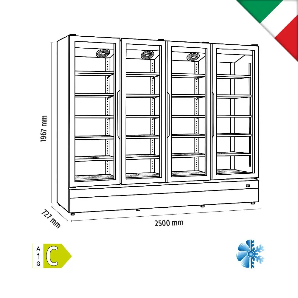 Βιτρίνα συντήρησης τετραπλή , βεβιασμένης ψύξης και χωρητικότητας 2057lt, του εργοστασίου KlimaItalia.
