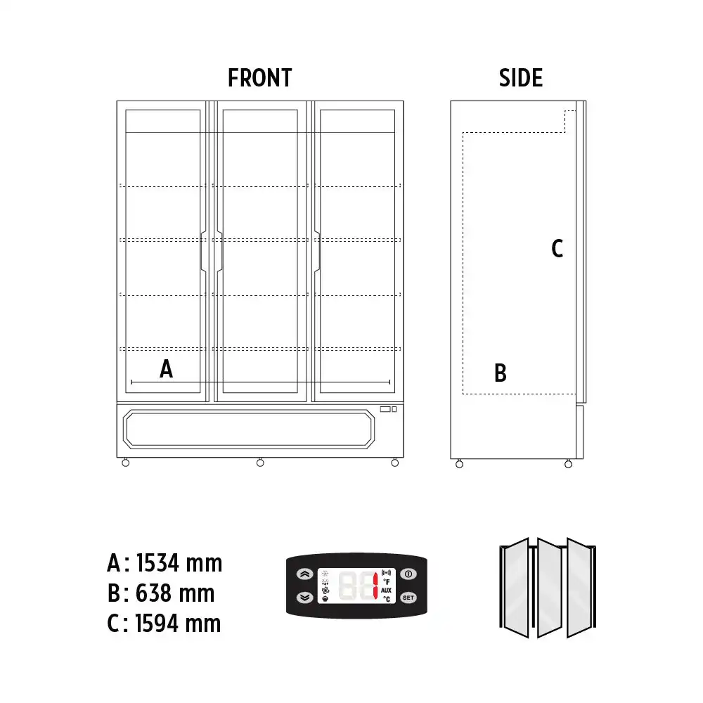 Βιτρίνα συντήρησης τριπλή με ανοιγόμενες πόρτες 1560 lt (MILANO 1620 BLK)