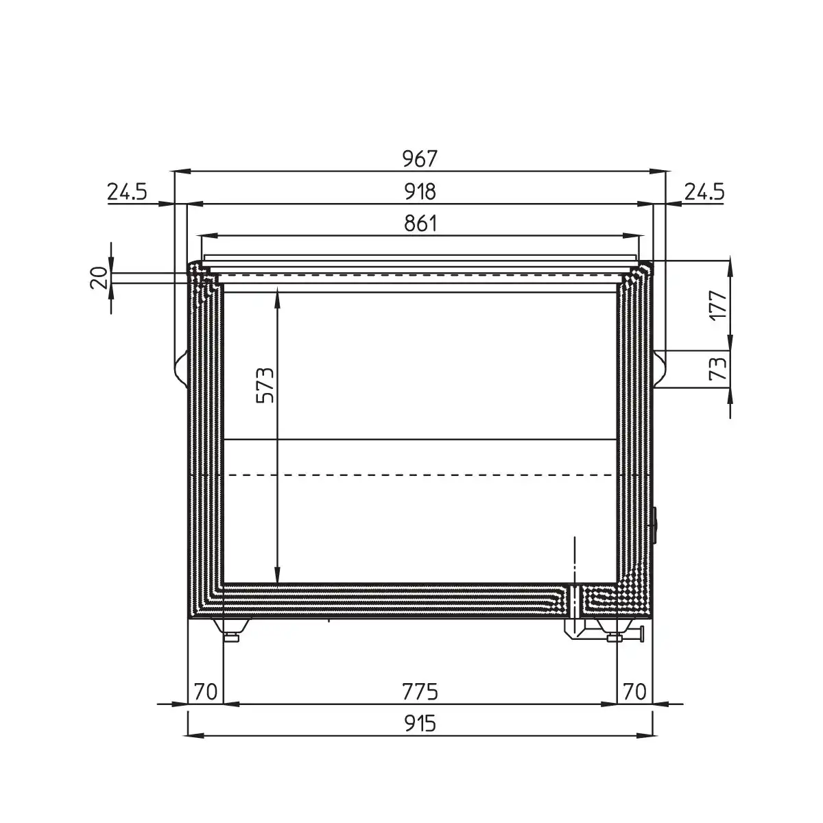 Καταψύκτης-βούτα με συρόμενα ίσια κρύσταλλα, χωρητικότητας 831 lt, του εργοστασίου Iarp.