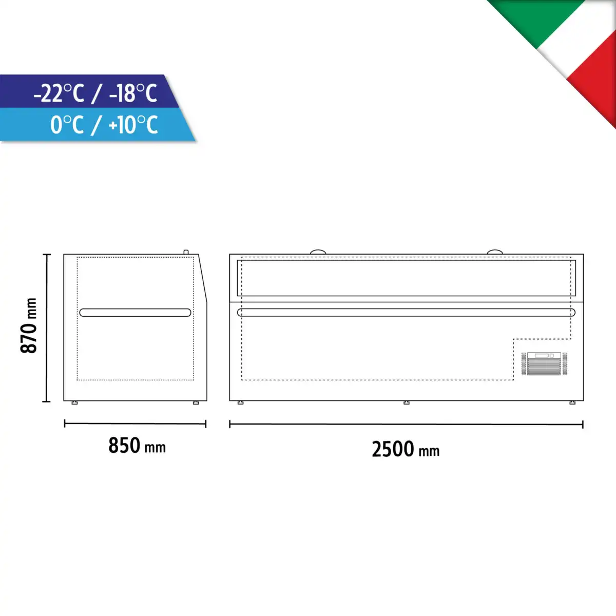 Βούτα μέσης / πλάτης , με την δυνατότητα λειτουργίας τόσο ως κατάψυξη (-22°C/-18°C) όσο και συντήρησης (0°C/+10°C). Με αυτόματη απόψυξη (hot gas) και χωρητικότητα 1105 lt. Προμηθευτής : KlimaItalia