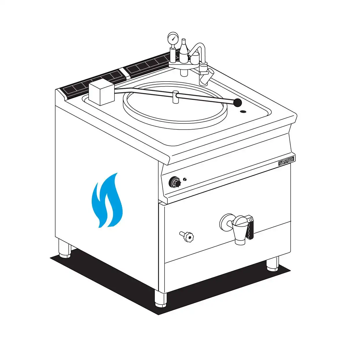 Βραστήρας ηλεκτρικός έμμεσου θερμάνσεως 50 Lt , του εργοστασίου Lotus. Κατασκευασμένο με χρήση ανοξείδωτου χάλυβα ποιότητας (CrNi 18/10 AISI 304) , με διακόπτες αδιάβροχης ποιότητας (IPX5). Εύκολο και ασφαλές σύστημα ανοίγματος και κλεισίματος.
