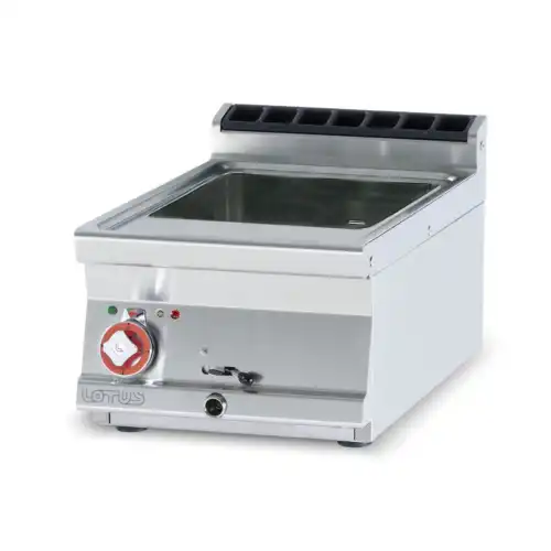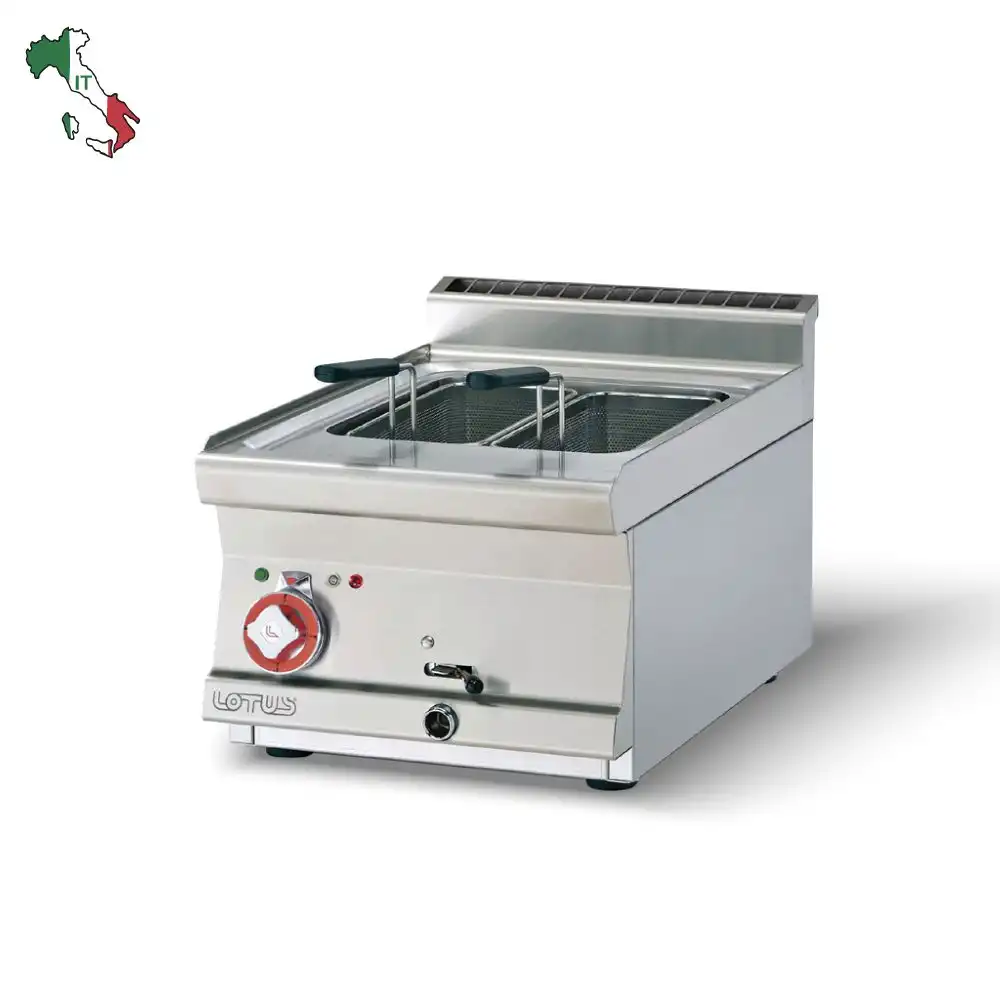 Επιτραπέζιος βραστήρας ζυμαρικών ηλεκτρικός, χωρητικότητας 17 lt, του εργοστασίου Lotus Ιταλίας Κατασκευασμένο με χρήση ανοξείδωτου χάλυβα ποιότητας (CrNi 18/10 AISI 304) , με διακόπτες αδιάβροχης ποιότητας (IPX5).